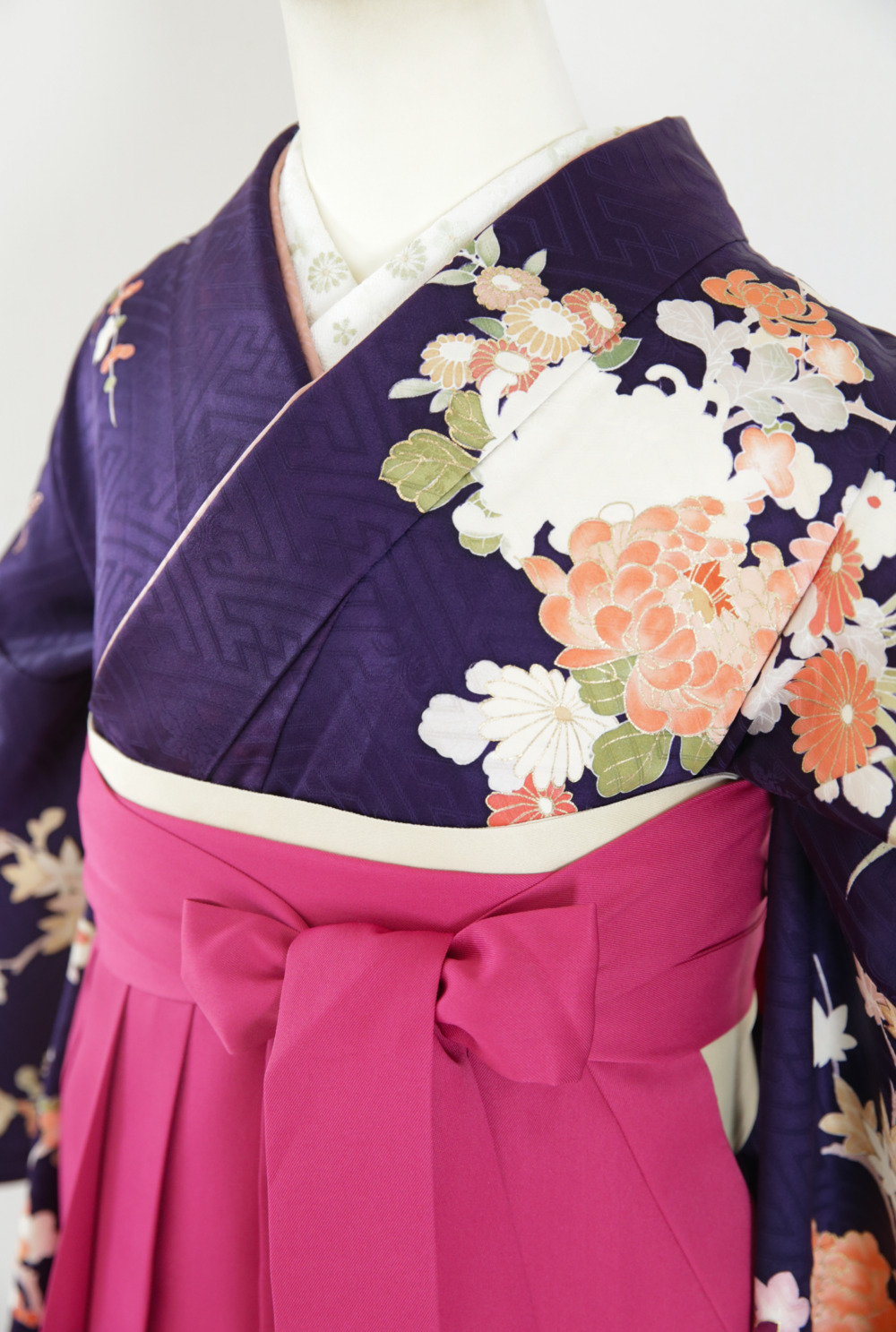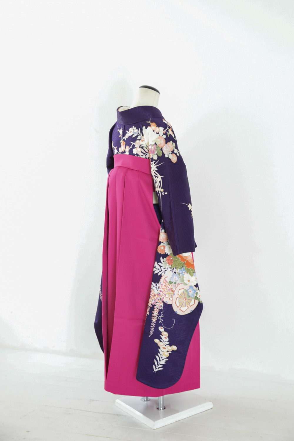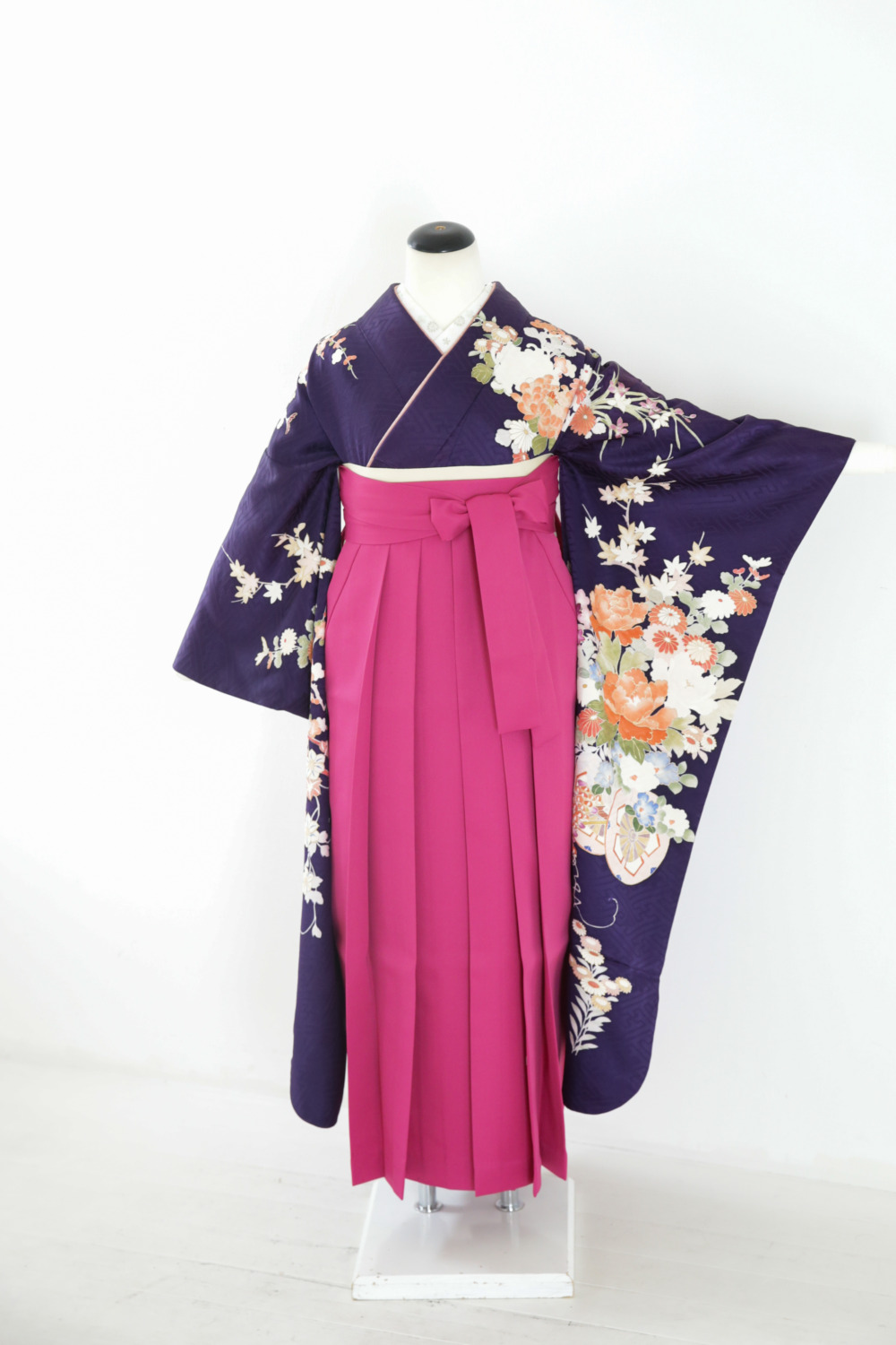 濃紺紫地花柄振袖 カテゴリー:学生卒業式袴レンタルカタログ きもの:濃紺紫地花柄振袖【FPA3-10】 裄:66cm 袖丈:106cm サイズ目安:M~ レンタル基本料金:¥65,000(税込¥71,500) ※刺繡半衿は、オプション料金要