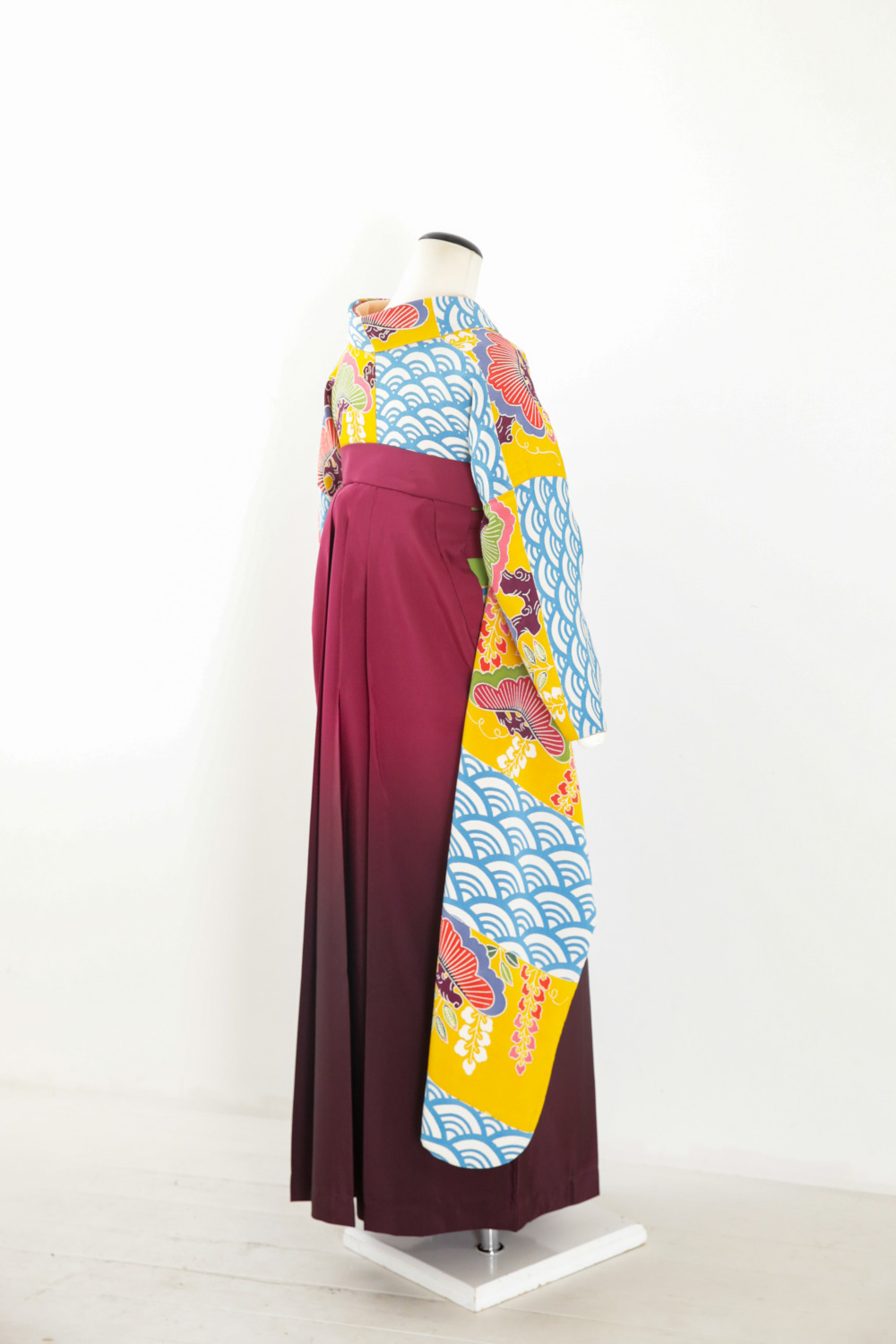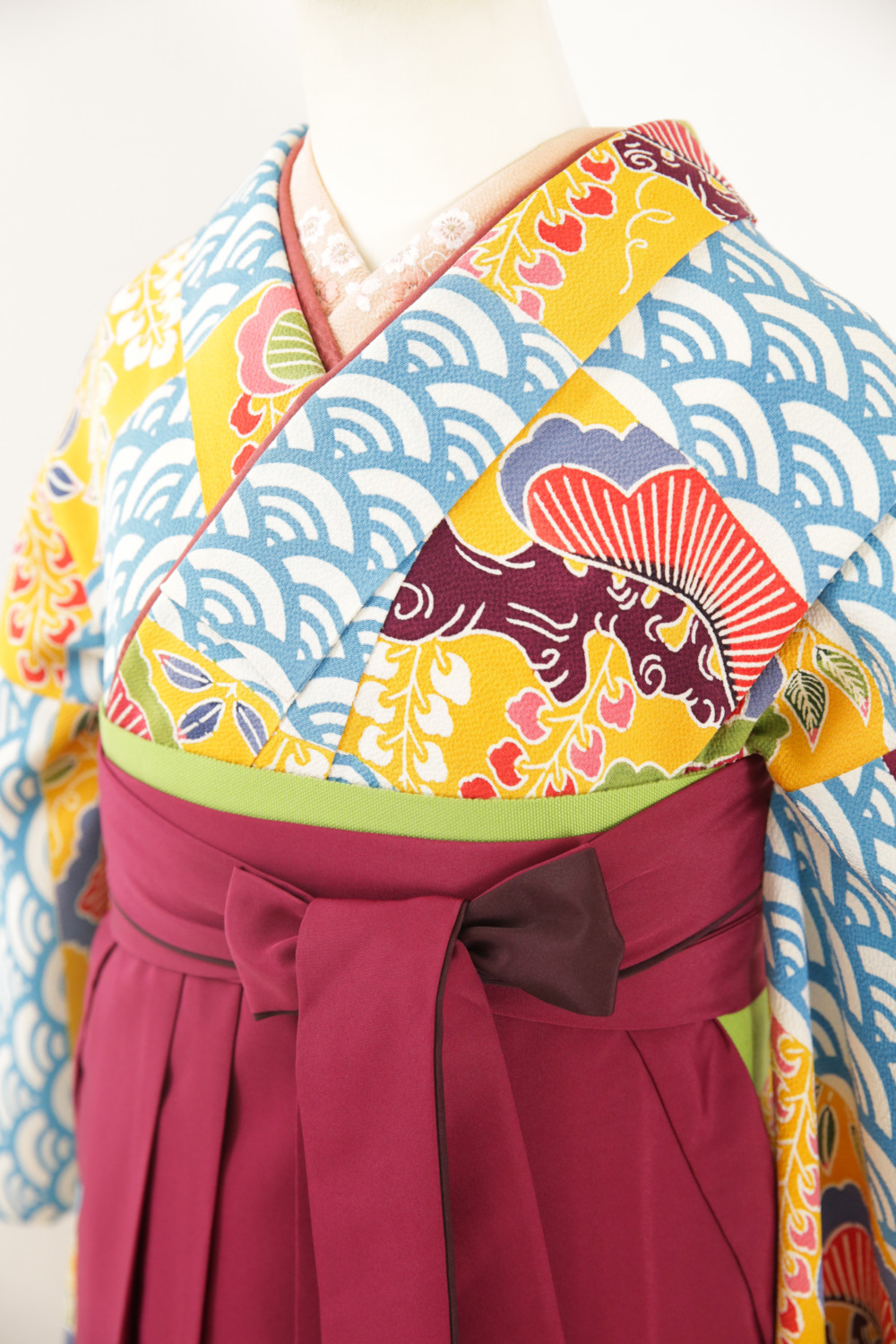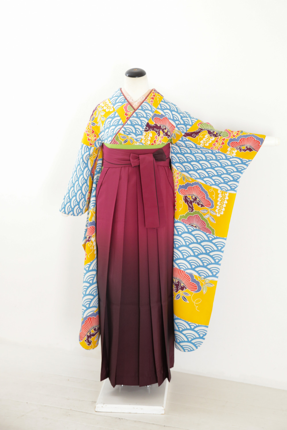 きもの:山吹市松に青海波紅型振袖【FGR2-3】