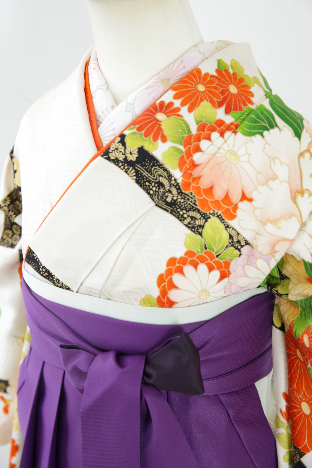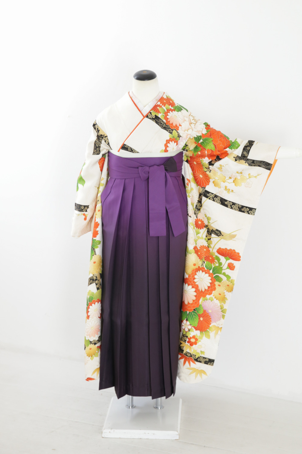 白地花格子振袖 カテゴリー:学生卒業式袴レンタルカタログ きもの:白地花格子振袖【FPA2-1】 裄:66cm 袖丈:106cm サイズ目安:M~ レンタル基本料金:¥71,500(税込) ※刺繍半衿は、オプション料金要 ※袴は、身長によって選べる色が異なります