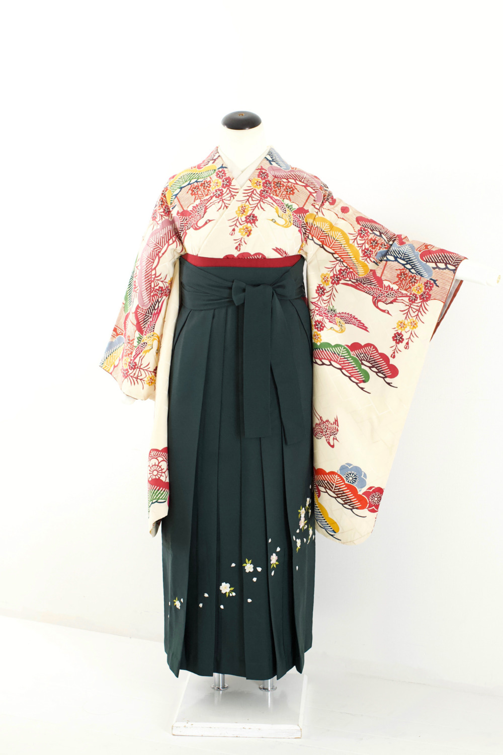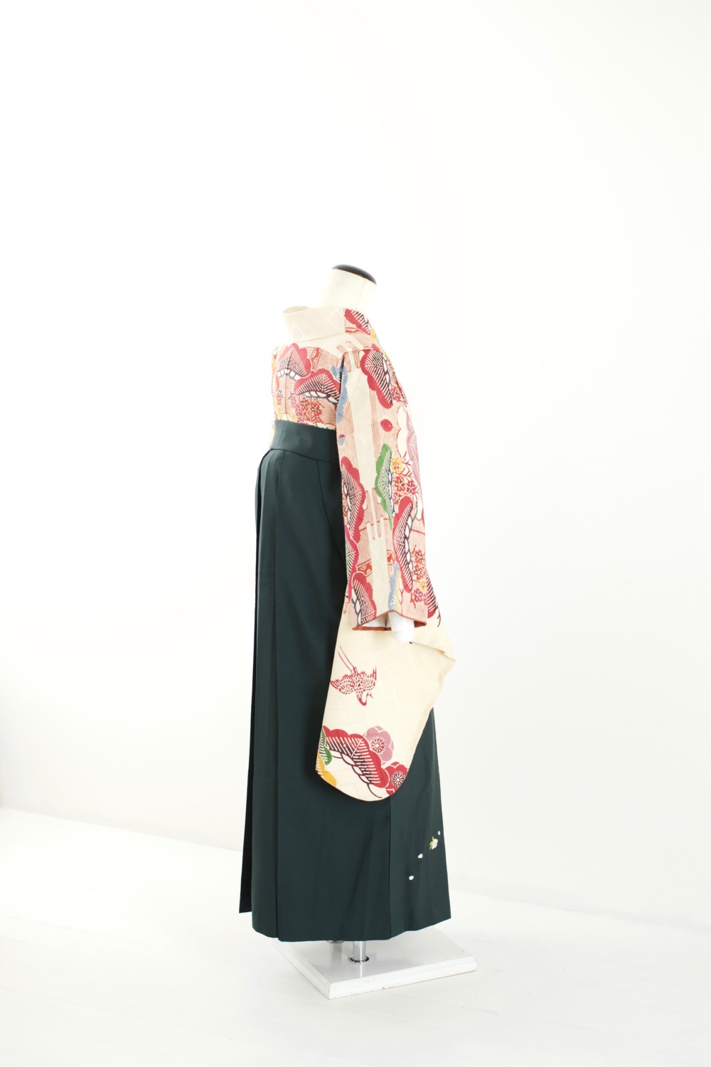 ベージュ地京紅型中振袖 カテゴリー:学生小学生卒業式袴レンタルカタログ きもの:ベージュ地紅型中振袖【HYE3-1】 裄:66.5cm 袖丈:75.5cm サイズ目安:M 袴:緑刺繍(M) 帯:赤系 レンタル基本料金:¥60,500(税込)