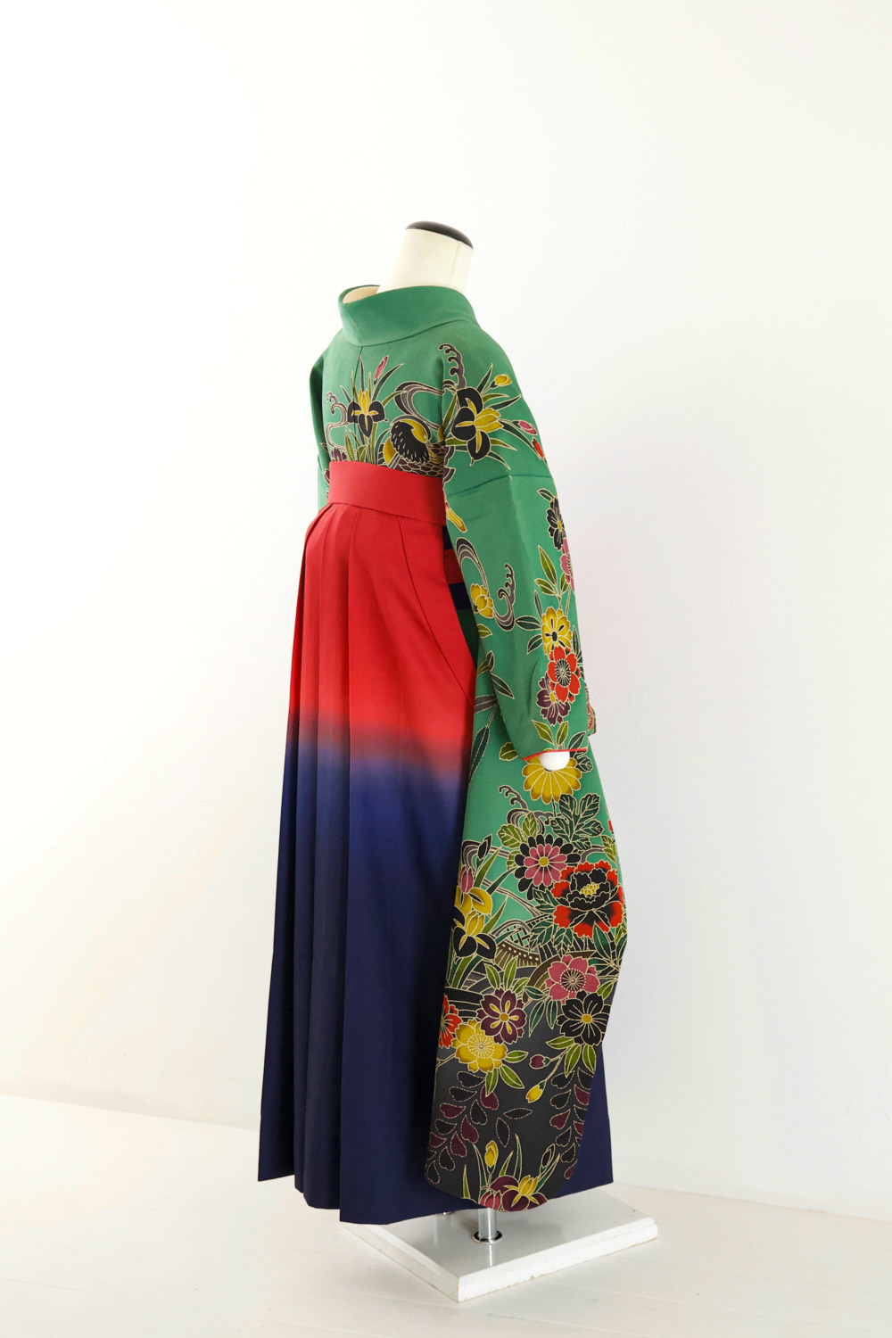 緑紅型振袖 カテゴリー:学生卒業式袴レンタルカタログ きもの:緑紅型振袖【FGR2-6】 裄:66cm 袖丈:106cm サイズ目安:M 袴:赤紺ツートンカラー(M) 帯:青系 レンタル基本料金:¥71,500(税込)