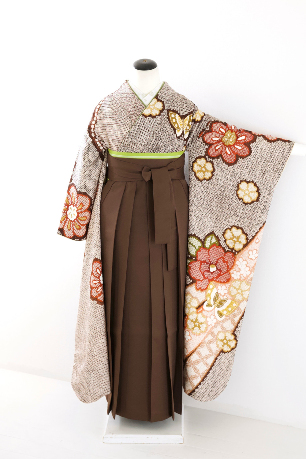 茶色地総絞り振袖 カテゴリー:学生卒業式袴レンタルカタログ きもの:茶色地総絞り振袖【FPA3-5】 裄:68cm 袖丈:113.5cm サイズ目安:L 袴:茶色(S、M、L、LL) 帯:黄緑系 レンタル基本料金:¥71,500(税込) オプション刺繍半衿:¥3,300(税込)