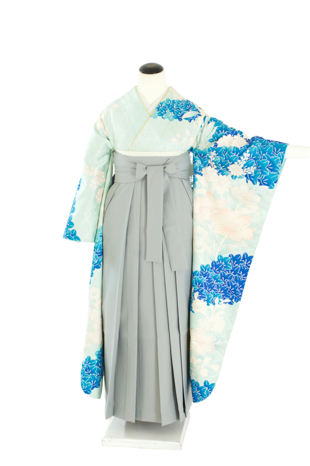水色地白花振袖 カテゴリー:学生卒業式袴レンタルカタログ きもの:水色地白花振袖【FGR3-11】 裄:67.5cm 袖丈:108cm サイズ目安:M~L 袴:グレー(L) 帯:クリーム系 レンタル基本料金:¥65,000(税込¥71,500)