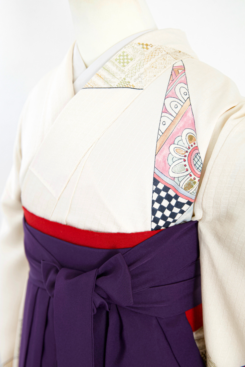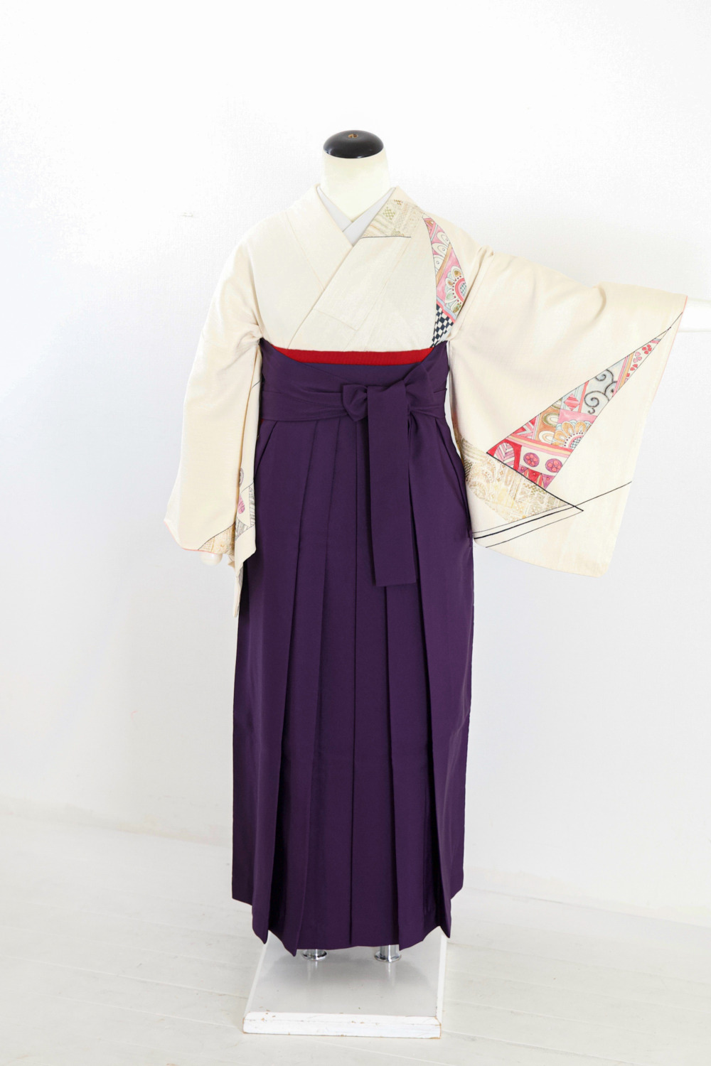 アイボリー幾何学訪問着 カテゴリー:教員・先生卒業式袴レンタルカタログ きもの:アイボリー幾何学訪問着【HOR1-2】 裄:65cm 袖丈:49cm サイズ目安:M~L 袴:紫(M/L) 帯:赤系 レンタル基本料金:¥30000(税込¥33000)
