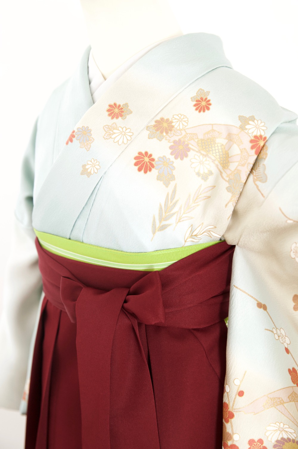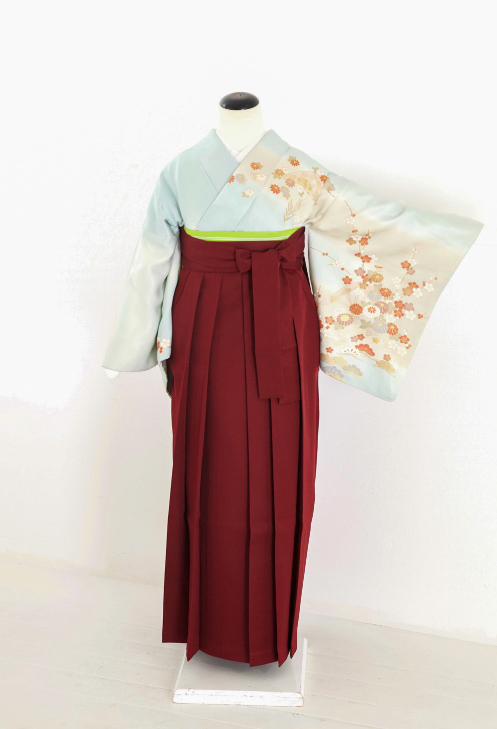 薄緑四季花 カテゴリー:教員・先生卒業式袴レンタルカタログ きもの:薄緑四季花【HYE4-1】 裄:67cm 袖丈:49cm サイズ目安:M~L 袴:エンジ(M/L) 帯:緑系 レンタル基本料金:¥32000(税込¥35200)
